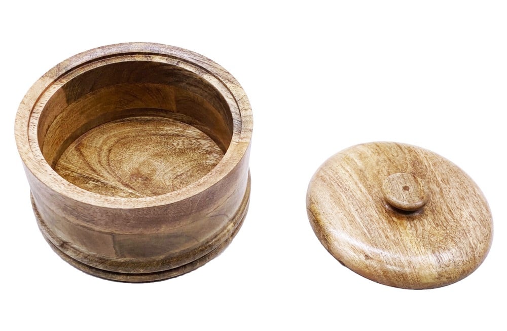 • غطاء خشبي محكم: تحتوي على غطاء خشبي محكم يساعد في حفظ الطعام، مما يحافظ على نكهته الطازجة ويحميه من التلوث، مما يجعلها مثالية لتقديم الأطعمة على طاولة الضيافة.