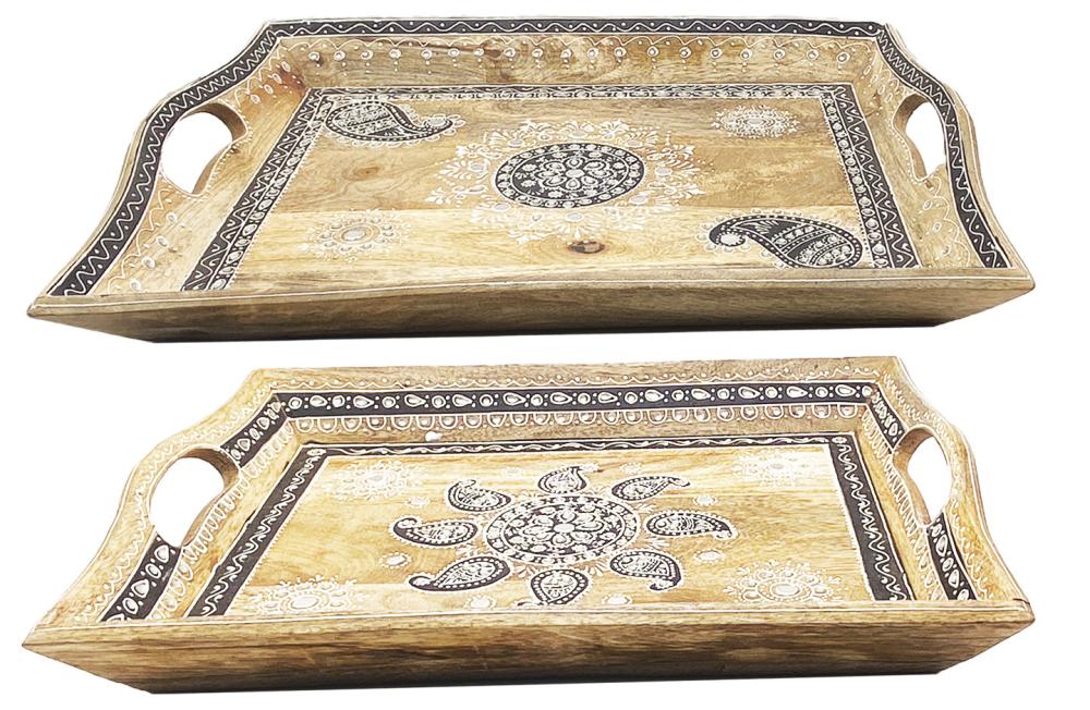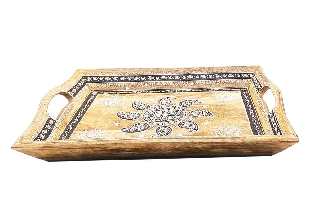 صينية خشب مستطيلة بتصميم تراثي – الخيار المثالي لضيافة راقية وأنيقة.