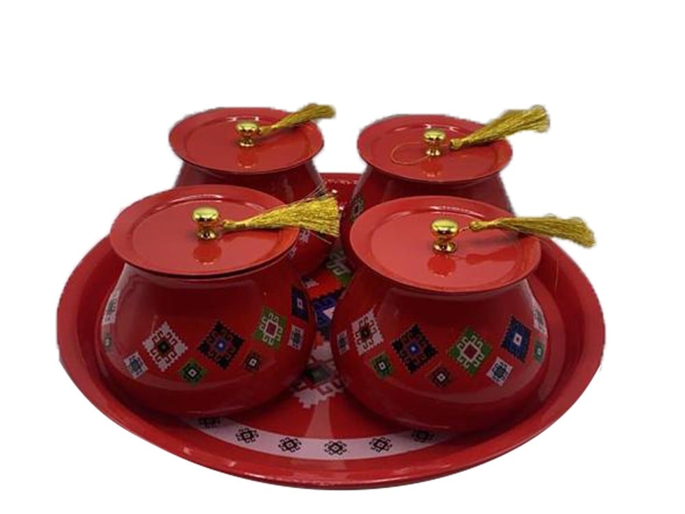 طقم صينية مع 4 بوادي بغطاء - لمسة تراثية وعصرية لمائدة ضيافتك