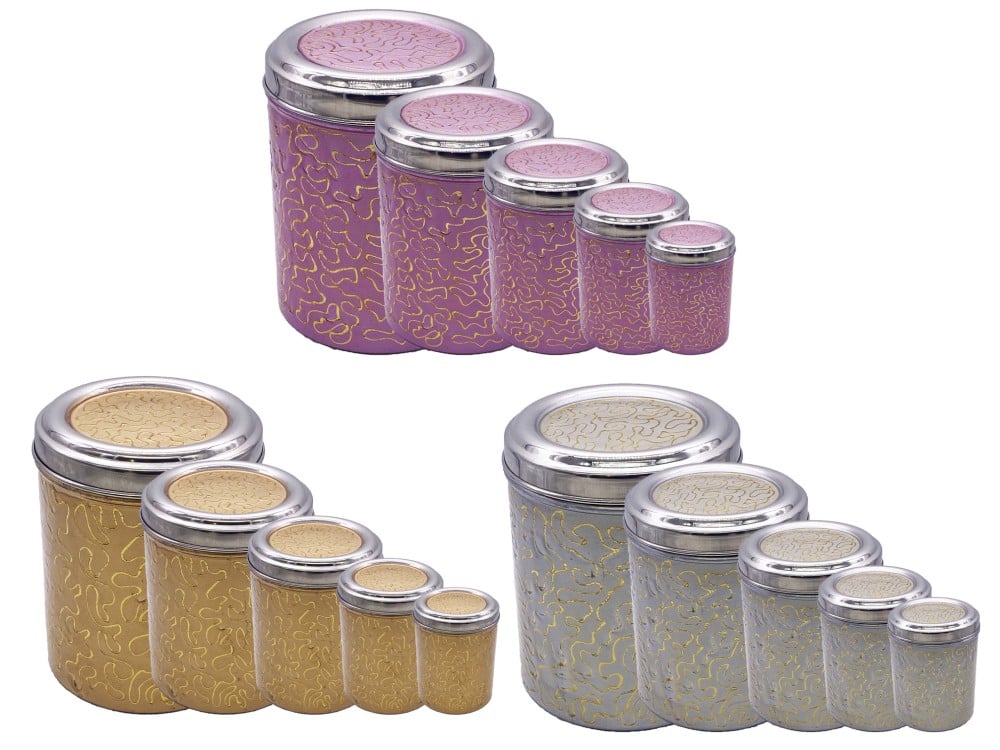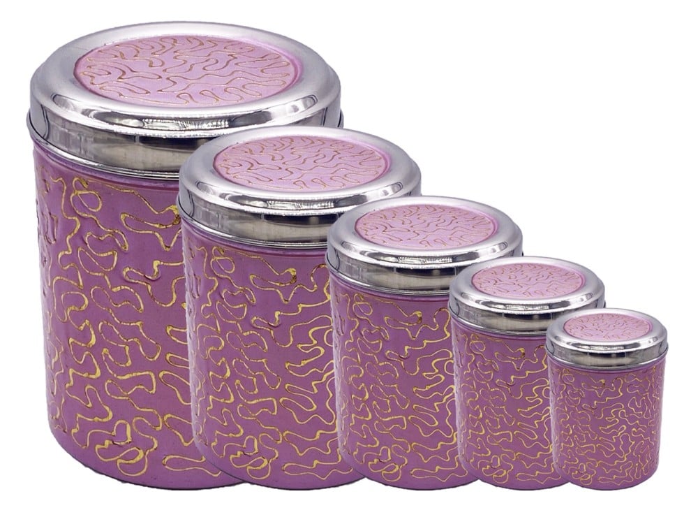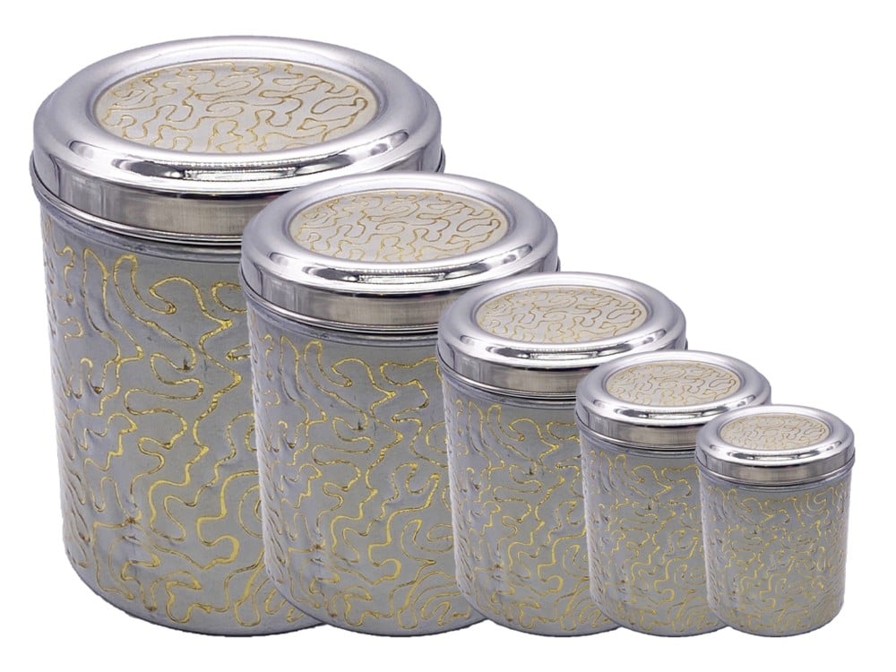 امنح مطبخك ترتيباً وأناقة مع طقم علب بهارات مكون من خمس قطع، المصنوع من ستانلس ستيل عالي الجودة، ليضمن تخزين التوابل والبهارات بطريقة عملية مع لمسة جمالية مميزة.